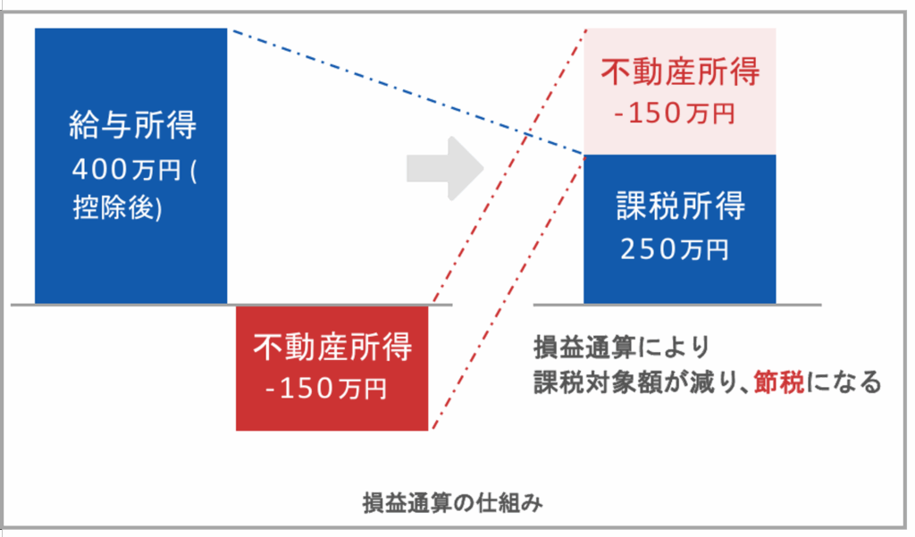 ②給与所得と不動産所得を合算し課税所得を減額(損益通算)