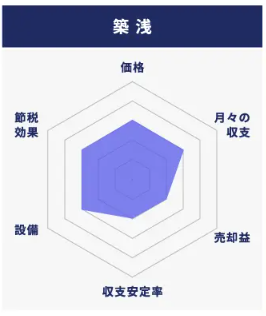 | 特性 | 設備が新しいため、購入後暫くの間は修繕費用等が掛からず運用できる。 その反面、利回りが低く、賃料の下落や管理費修繕積立金の値上げなどにより、キャッシュフローが改悪しやすい。 |
