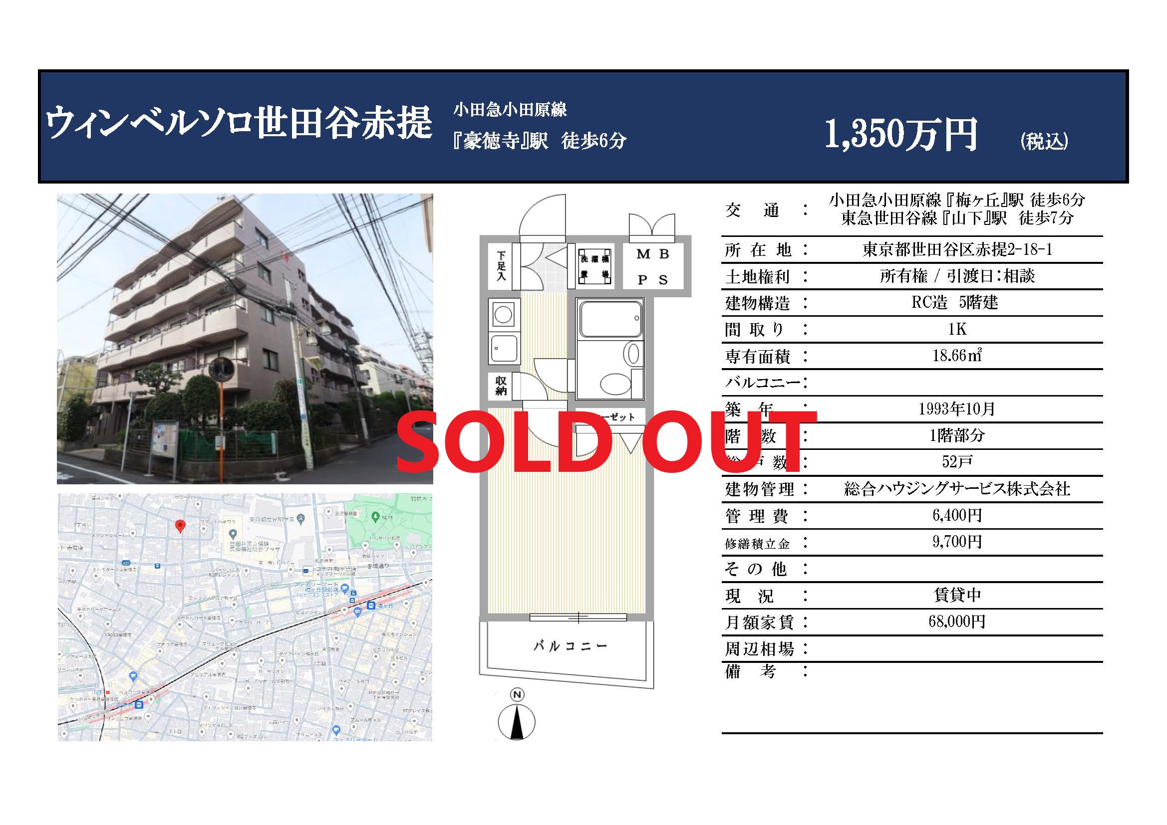 | 物件名 | ピックアップ物件㉗ウィンベルソロ世田谷赤提 | ||