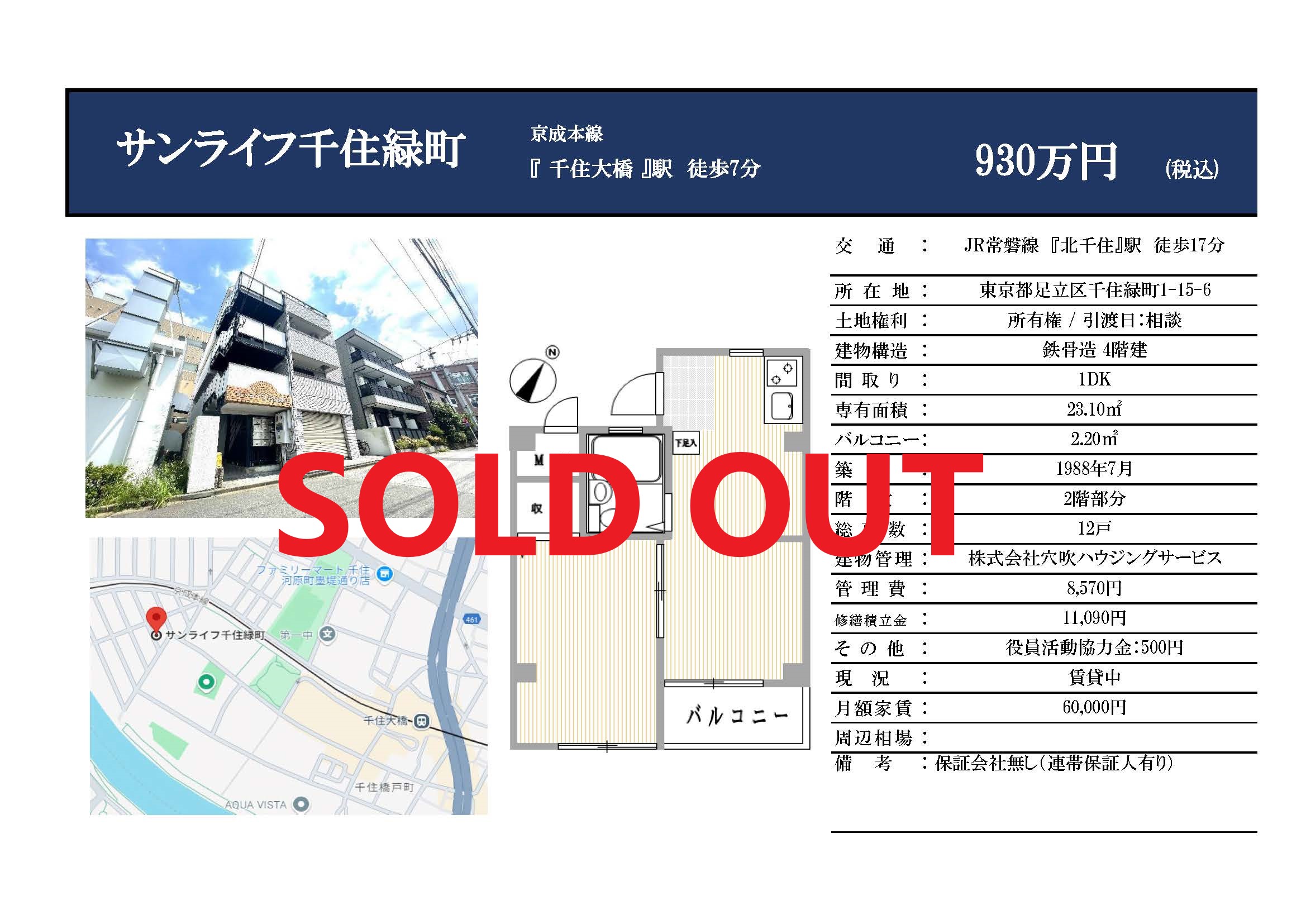 | 物件名 | ピックアップ物件【53】サンライフ千住緑町 | ||
