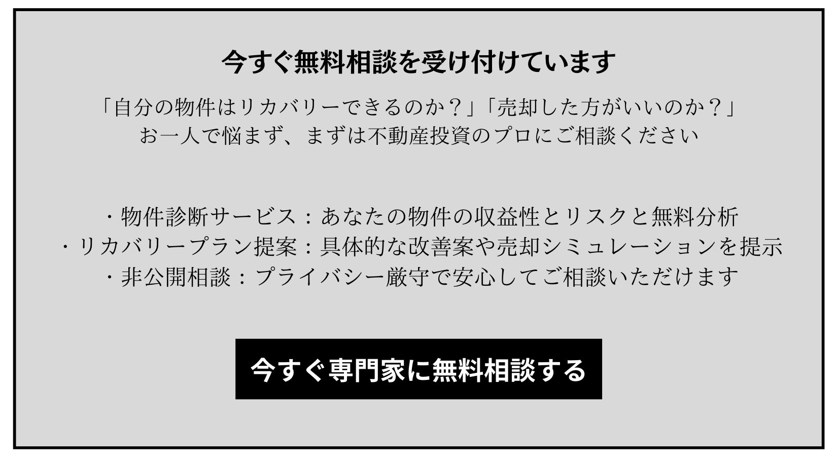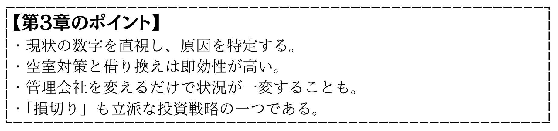 - 空室対策や管理会社変更を行なっても、1年以上収支が改善しない。