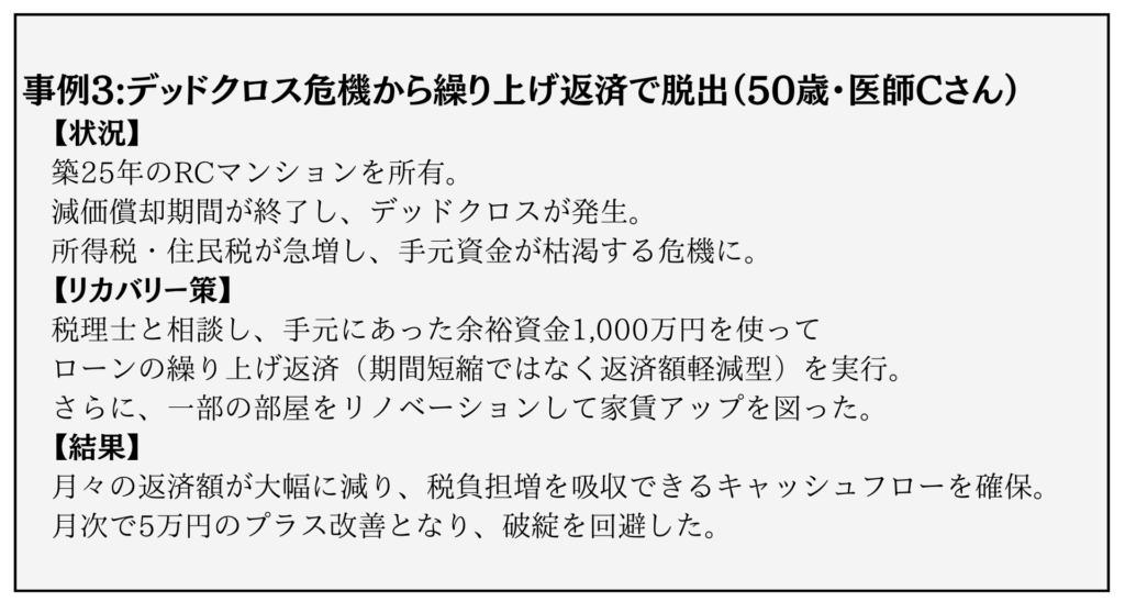 不動産投資特有の現象である「デッドクロス」も、黒字倒産を招く大きな要因です。