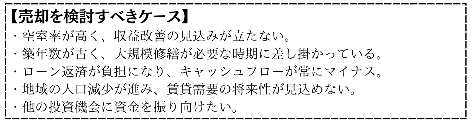 以下のような状況では、売却を真剣に検討すべきでしょう。