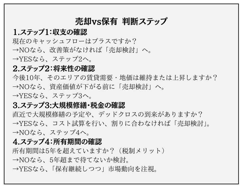 最も大きな悩みの一つが「この物件を今売るべきか、それとも持ち続けるべきか」という決断です。